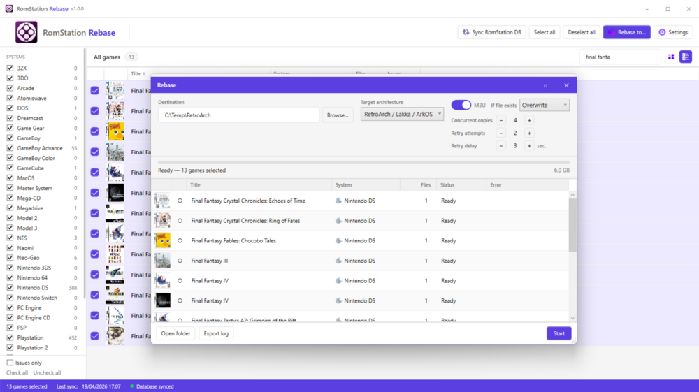 The idea came from wanting to make my life easier when transferring ROMs downloaded from RomStation to my Anbernic-type consoles or my RetroArch setup (and soon, my Ayn Thor 😛). At first I was just going to put together a simple PowerShell script and call it a day, but I eventually went for a proper tool that actually relies on RomStation's data (so RomStation itself is a required dependency for the tool to work).