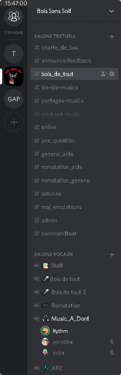 yorotiba Posted May 16, 2016 Share Posted May 16, 2016 Bonjour à toi romstatien et romstatienne Comme le titre le dis, je vous propose un serveur vocal pour romstation. Bien que je ne l'ai pas créer à l'instant ceci fait un bon moment je l'ai mais sacrément vide faute de généralité de la vie 😁 Cependant j'ai accessoirement créer des channels spécialement pour RomstationQuel est l’intérêt de venir dans ton serveur alors que romstation est aussi bien ? Comme je l'ai précédemment expliquer. Je ne suis pas affilié ou en partenariat avec l'équipe de romstation. J'ai décider de créer un serveur vocal entre-autre pour romstation, mais aussi pour tous les joueurs en ligne. Cette décision à était décider pour donner une nouvelle jeunesse d’antan ( comme je l'explique dans l'histoire du serveur ci dessous ) Puis aussi de trouver une convivialité, des amis, des joueurs en lignes, des conseils, de l'aide en tous genre, ETC, vous l'aurez compris, parler de tout et de rien plus simplement que sur un forum à message différé. Quand est-il de ton serveur ? A l'origine ce serveur était utiliser lors de mes jeux intenses de MMORPG, puis avec les années je me suis calmer rendant le serveur petit à petit vide. c'est alors que j'ai pensé à vous, fossile que je suis, oh j'en vois déjà fouillez mon profil et savoir quel âge j'ai, inutile de chercher je suis né en 1984.30 ans fossile ? et moi j'en ai 58 je suis quoi ? aller blague à par, revenons à nos moutons me sentant parfois seul ( avec mon ami de longue date ), je me suis dit que rendre un accès facile et rapide ( à contrario de teamspeak ) afin de permettre à qui que ce soit d'avoir une discutions autres que s'usé les doigts et provoqué des arthrites à la longue sans parler que, nous avons pas toujours le temps de nous occuper d'un serveur ( voir de l'oublier complètement ) A ce si près que moi j'accepte tout le monde que vous ayez 10 ans ou 110 ans tout le monde à droit à sa part ( ne penser vous pas ? ) et puis savoir que on peut trouver réponse plus rapidement sur un lieu de discution vocal ou textuel plutôt qu'un forum ou il faut attendre parfois longtemps sans avoir de réponse ( je n'incite pas à arrêter d’écrire sur le forum, bien le contraire ). Mais si c'est un petit soucis mineur ( bug de manettes ), exemple concret ont vas pas aux urgences pour une entaille alors que vous épluchiez une pomme ) Vous l'aurez compris accédé à ce serveur ne vous dispense pas d'écrire sur le forum, mais l'utilisé pour des raisons autres et en plus qu'un simple moteur de recherches d'aides. Mise à niveau sur le serveur : Révélation Suite à l'augmentation de membres sur notre serveur, des changements radicaux on été effectuer, désormais les channels textuels et vocales sont plus clair, offre plus de choix de discutions) De nouveaux channels verront le jours, suivant les demandes et les accords de tous, retenez que nous admins, sont à l'écoute de tous le monde, et bien que vous pouvez proposer un nouveau canal et qui'il ne soit pas de suite créer, il ne tombera pas dans l'oreille d'un sourd. 25/11/17 Nouvelle MAJ de discord et du serveur En raison de nouvelles options créer par les développeurs, le serveur prends une nouvelle forme. Vous retrouverez toujours les anciens channels + des nouveaux Le tout désormais regrouper par catégorie ceci afin de rendre moins brouillons et plus lisible. il vous suffit de dérouler la catégorie pour accéder aux salons textuel ou vocal du serveur et de romstation. Tutoriel pour les premières utilisations Pour commencer vous devrez mettre un pseudonyme J'insiste sur le fait que j'ai une préférence pour le même nom que sur romstation ( afin de facilité l'aide, et la reconnaissance des membres dans RS ) MAIS ! je ne vous oblige pas, ce n'est qu'une suggestion, vous êtes entièrement libre de mettre le pseudo que vous souhaitez. Vous pourrez le changer à tout moment une fois inscrit. ensuite il sera nécessaire de créer un compte ( à l'origine ce n'est pas obligatoire, mais c'est une options de sécurité que j'ai introduit ) L'avatar est optionnel ( mais c'est plus agréable avec 😀 ) Il est recommander de télécharger le logiciel, plutôt que d'utiliser le navigateur, pour facilité la détection de micro ( ceci reste optionnel, si vous souhaitez rester sur le navigateur, je vous invite à lire la section ci-dessous Il sera important de valider votre E-mail, sous peine de voir votre compte supprimer automatiquement sous 24h. si vous n'avez pas reçu le mail, vérifié le dossier SPAM - courrier indésirable, ou cliquer sur la case en bas " renvoyer un email de validation " Comment j'accède à ton serveur ? Clic sur le lien https://discord.gg/0ID6tSyivhTmSHk4 Depuis le logiciel Discord comment rejoindre le serveur ? une fois télécharger, lancer et connecter ( avec votre email ) il vous suffira de cliqué sur l'icône " BSS " en haut à gauche, et sélectionner le channel désiré Comment est disposé ton serveur ? Il est disposer de 2 manières la channel écrit ( pour ceux ne disposant pas de micro ) la channel vocal ( pour ceux disposant de micro ) Chacun deux est libre d'accès selon vôtre rôle. Image non contraxtuelle Les rôles dans Discord AdminMembre Romstation ( joueurs utilisant uniquement Romstation ) Membre BBSRom ( joueurs utilisant les autres jeux et romstation ) Invité ( everyone )Quel sont les droit acquis à ces rôles ?L'admin à tout les droits Membre BBSRomMembre Romstation Droits communs pour les membres ( hors accès aux channels vocales spécifique au rôle ) Les invités sont uniquement autorisé à écrire un message sur le canal Textuel " bois_de_tout " Comment faire pour obtenir le rôle de membre ? Il suffira de cliquer sur l'emoji en référence à ce que vous êtes Le principe type des serveurs ?De quoi à ton droit de parler dans ces channel ? Bien sur vous n'êtes pas obliger de parler exclusivement d'émulateur