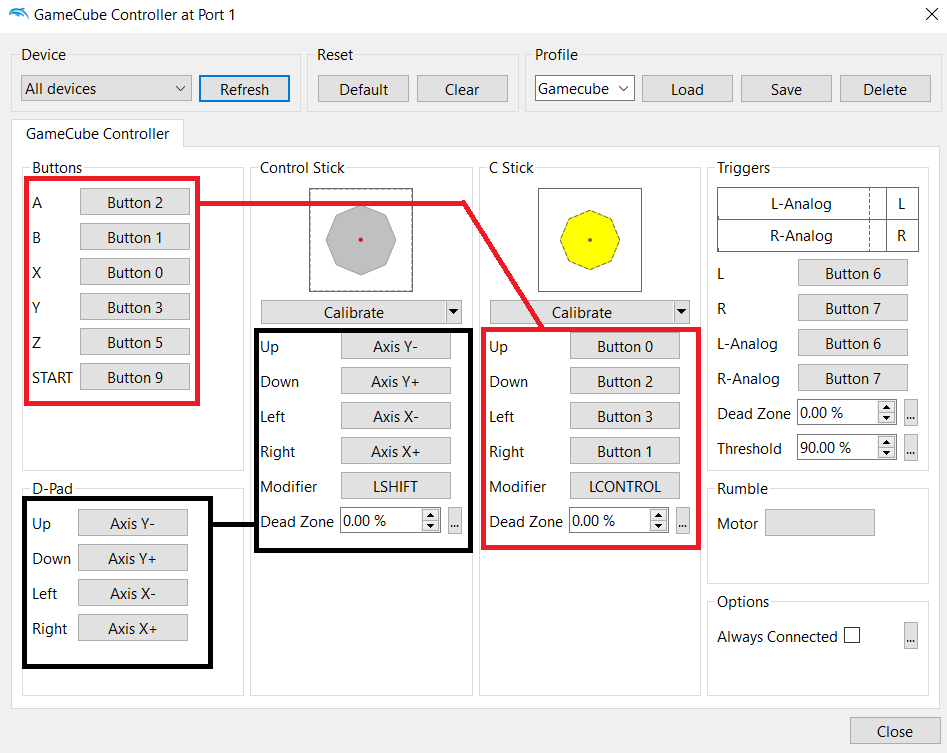 En gros quand j'assigne mon stick gauche, j'ai les même bouton que le D-pad (ça à la limite je peux m'en passer) mais par contre j'ai le même problème avec le côté droit. Quand j'assigne mon stick droit (donc le C stick) je me retrouve avec les mêmes touches que A, B, X et Y, et c'est donc vachement handicapant pour certains jeux utilisant pas mal le C stick