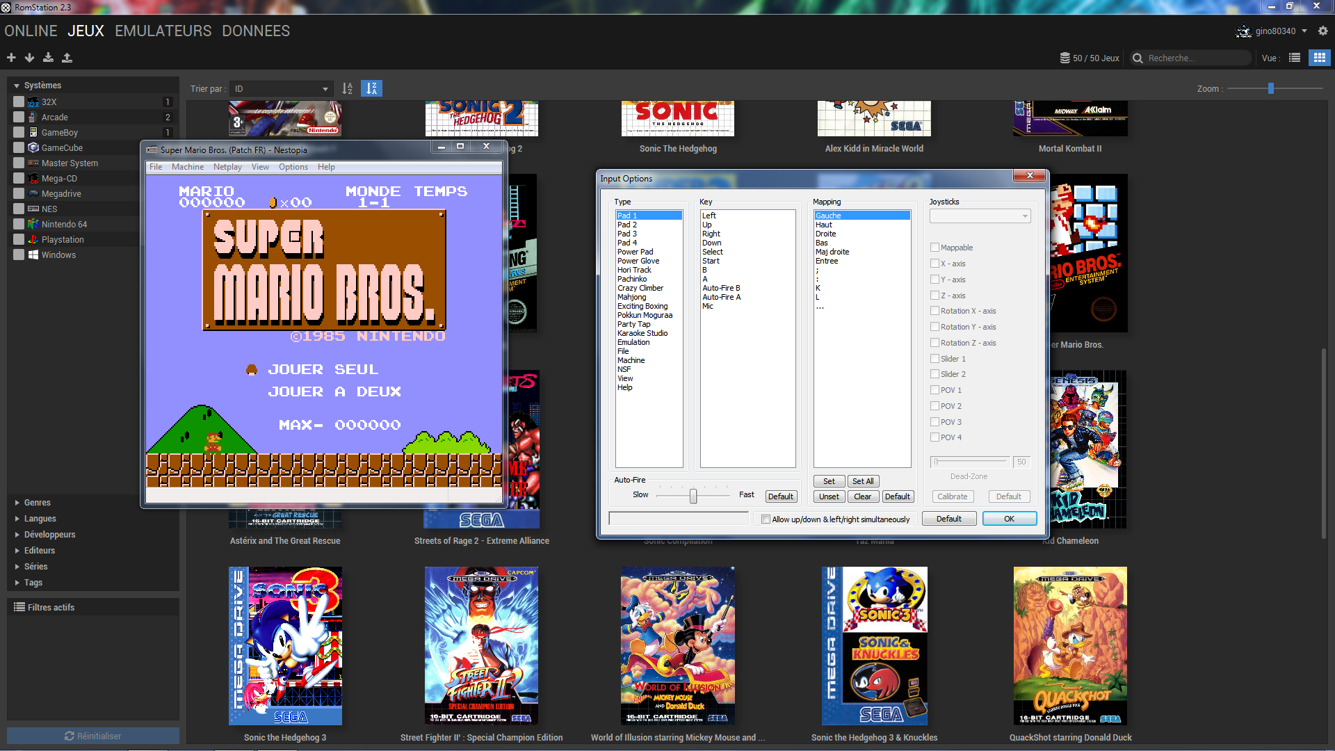 0 BenjaminCM Posted June 3, 2020 Share Posted June 3, 2020 Bonjour Pour tes touches qui ne fonctionne pas , il faut d'abord sélectionner ta manette dans le menu déroulant : Joystick puis fait Set All et tu configuras toutes tes touches par rapport à ta manette Si ta manette n’apparaît pas dans le menu déroulant , c'est que ta manette n'est pas reconnu pas le système d'exploitation Pour régler ce problème , regarde si ta manette est livrée avec un CD de pilote ou va faire un tour dans le gestionnaire de périphériques Si cela ne marche toujours pas , n'hésite pas à nous donner plus de précisions (si c'est mal expliqué , nous ne pourrons pas t'aider Je te souhaite une bonne journée Au revoir Link to comment Share on other sites More sharing options...