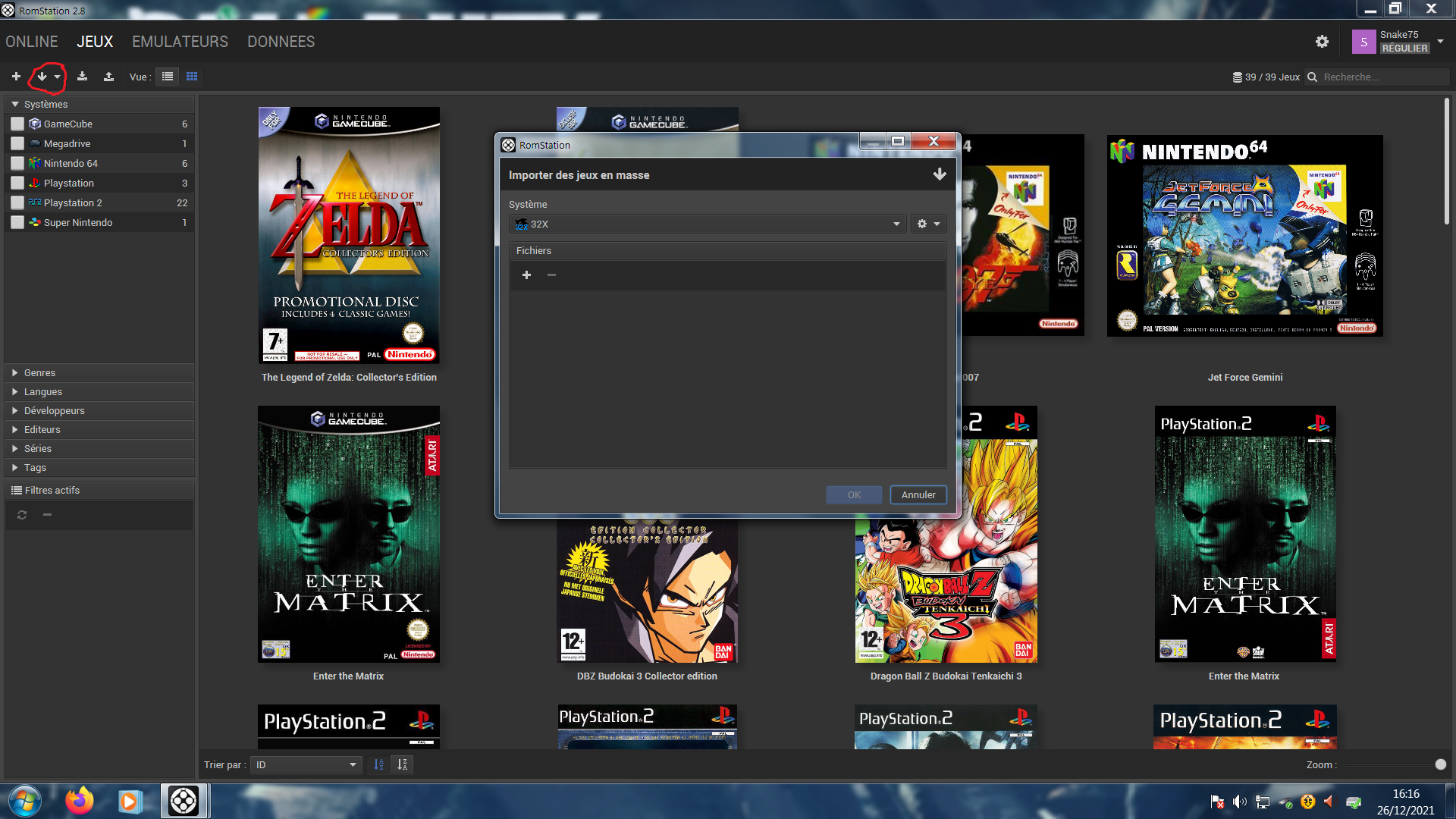 Récemment, j'ai rencontré un soucis avec le programme, lorsque je l'ouvrais il se refermait aussi vite, j'ai alors transféré le dossier de tout les jeux téléchargé sur mon disque dur externe, pour désinstaller et réinstaller romstation, depuis, le programme s'ouvre sans aucun problème et je peux donc l'utiliser comme avant, j'ai ensuite transférer ce dossier downloads dans la catégorie [disque local (C:) romstation app] mais depuis le programme romstation, je clic sur "jeux" et aucun n'apparait. pourtant mes jeux sont bien dans mon pc, j'ai même fait une copie pour ne pas les perdre ni les corrompre.