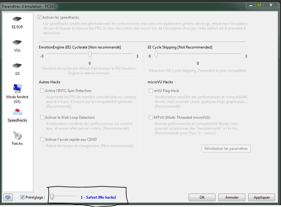 D'après le wiki, l'émulateur a du mal pendant les cinématique et tu dois mettre le préset "safest" pour que ça fonctionne.: