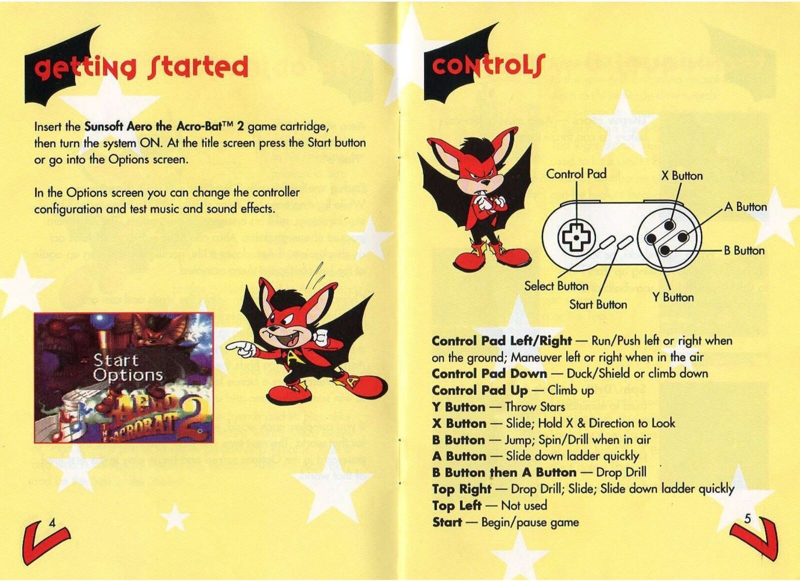 Venu de Internet Archive https://ia802506.us.archive.org/22/items/snes_manual_archive/Aero%20the%20Acrobat%202%20(%20USA%20).pdf