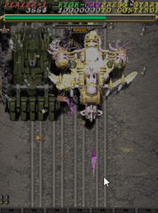 The player's weapons arsenal consists of a main gun and bombs. Bombs must be collected in fragments, and once the player has all of them, the Hadou Cannon can be used. Staying behind the cannon will make the player invincible for the duration of the effect. Additionally, enemies drop various "options," up to two of which can be attached to the wings of the plane to further increase fire power.
