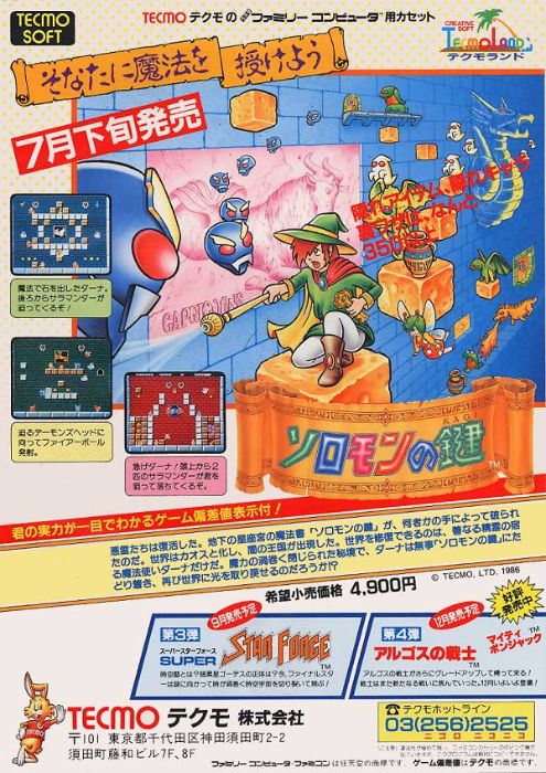 Bonus Items litter each room, as well as being hidden in granite blocks, and collecting these will earn the player for extra points. Power-ups can also be found and picked up. These appear as potion bottles with a flame emblazoned on them. When used, Dana shoots a fireball which will start moving along the walls and platforms and will destroy the first demon it comes into contact with.