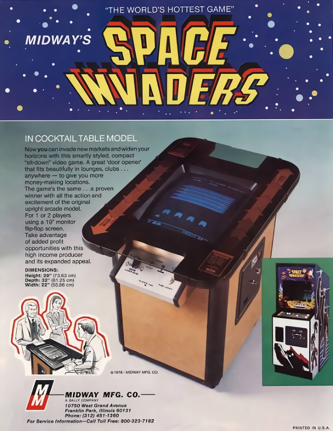 Earth is under attack from rows of bomb dropping aliens, and you need to defend it! The rows of aliens begin at the top of the screen, and you control a laser cannon at the bottom of the screen. Your goal is to earn points by shooting the aliens before they can land. The aliens march back and forth, and each time the end of the screen is reached they will drop one row closer to the bottom. Shoot them all, and you move on to the next (tougher) level, but if even one of them lands the game is over. From time to time a flying saucer will pass by along the top of the screen; shoot this to earn extra points. Just above your laser cannon are three shields; these can be used to hide from the alien's bombs, but will also block your own shots. You begin the game with a limited number of laser cannons, and if all of them are bombed the game ends.