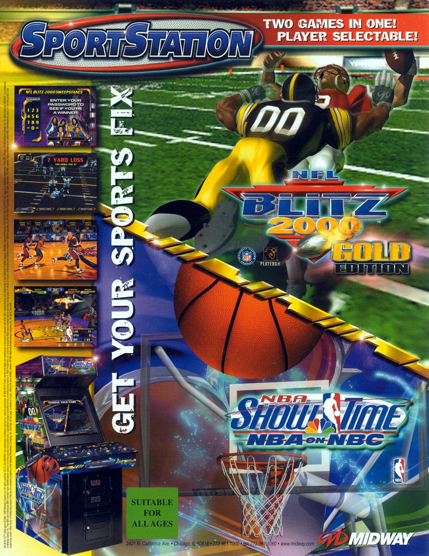 Also known as the Midway SportsStation, The Blitz 2000 / NBA Showtime arcade game offers two great sports games in one explosive arcade package!