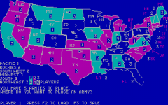 1998 Amerika is a shareware game similar to Risk but instead of using a map of the world and fighting for countries, this game uses a map of America and the battles are for states. Though this game is based on Risk it does not adhere to the rules of that game, for example when a player wins a battle they win propaganda cards which can be traded for armies.