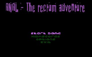 ANAL: The Rectum Adventure is a textmode proof-of-concept inspired by R-Type and countless side-scrolling space shooters of its ilk. The game puts the player in control of a small triangular ship against a scrolling starfield and amidst a thronging swarm of stupid but dangerous green happy faces, which will cause the player to lose one life upon contact. The ship is equipped with infinite ammunition (fortunately, as there are similarly infinite amounts of enemies) and it can maneuvre around tight spots with the arrow keys if for whatever reason the player chooses to take a break from the itchy trigger finger.