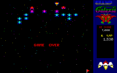 CHAMP Galaxia is a DOS shareware remake of Namco's classic 1980 Galaxian arcade shooter. Like the other games in CHAMProgramming's series of arcade remakes, it is remarkable for closely emulating the original, the smooth gameplay and two game modes, the original "Classic" and the enhanced "Champ" mode.The "Classic" mode plays and feels like the arcade machine, with very similar graphics, sound and gameplay: You play a spaceship, moving horizontally at the bottom of the screen, and shooting up at a bunch of Space Invaders-like aliens, which attack you in waves becoming harder and harder with the game.The "Champ" mode is an upgraded version of the classic game with new enemy types -- requiring more than one hit to destroy, or equipped with a cloaking device making them nearly invisible -- and a variety of power-ups for the player, with create an entertaining variant of the original game.Finally, the game features a variety of options -- one or two player modes, three difficulty settings, adjustable game speed, input by keyboard, mouse or joystick (Champ even released a "Champ cable" that allowed you to play the game with digital joysticks), and a high score table to round it all off.