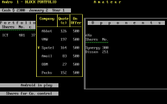 Features include buying and selling shares, company reviews, takeover bids, money market, gain control of your chosen company, fines, reviews, insurance and taxation, World Bank loans, and graphic presentation to ensure your Broker's envy.