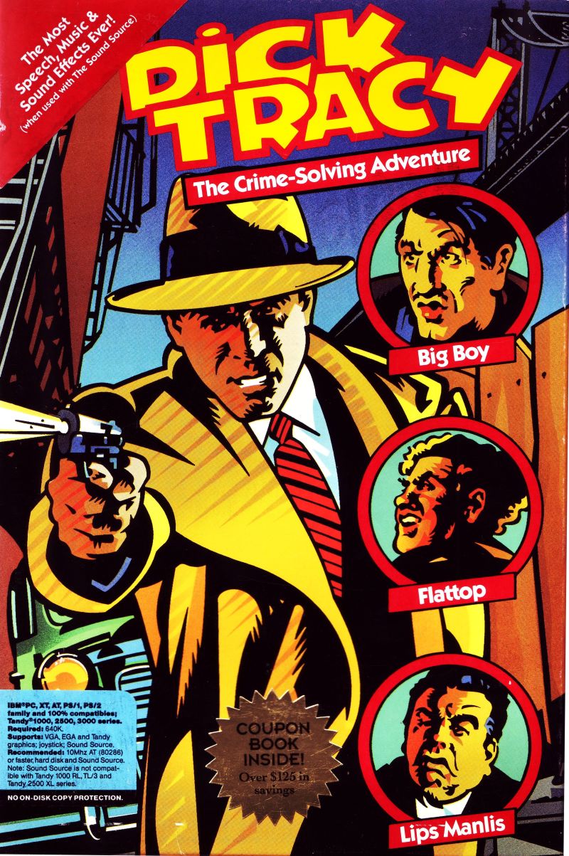You're the famous square-jawed detective in this graphic adventure. Track down criminals and solve cases using your two-way wrist radio, squad car, and bugs you plant in the bad guys' hideouts. Suspects behave differently depending on their personality: Some will cooperate, while others will interpret a show of force as an invitation to a gun battle. Features characters from the comic series.