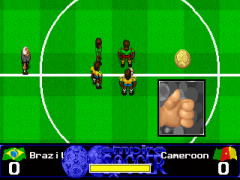 Before each match your team can choose special moves to assign to each player - power shots with ludicrous curve, super dribbling (making the ball stick to your foot), and a Barge power to push players out of the way. A full world cup tournament is offered, which up to 8 human players can partake in, as well as single exhibition matches. The action replays feature a VCR-style control.