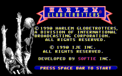 This game allows you to play as either the Harlem Globetrotters or their rivals, the Generals, in an exhibition basketball game. The player can choose to have the quarters last from one minute to twelve minutes. Also, if you are playing as the Harlem Globetrotters you are able to pull off special maneuvers such as a behind the back pass, slam dunk, and a piggy back slam. At certain moments during the game the Harlem Globetrotters team can also interfere with the referee by pulling down his pants and tripping him.