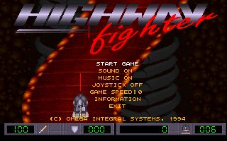 Highway Fighter is a scrolling top-down shooter, where you control a car equipped with advanced weaponry, sent out to destroy a world-threatening criminal organization. Each level is a long, winding road along which the car drives, facing various enemy vehicles coming at him from the opposite direction. Close contact with the edges of the road or with the enemies will result in destruction. The car is equipped with a laser cannon with which to destroy the opponents. There are a couple of pick-ups that can be found on the way: a weapon upgrade, a bonus that allows the car to destroy enemies by running into them, a bomb that instantly clears the screen of enemies, and three types of shields: a rotation shield (it orbits the car and destroys bad guys on contact), a side shield (prevents the car from destruction from the edges of the road) and a forward shield (destroys enemies in front of the car).