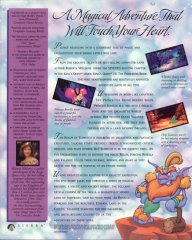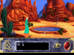 Like its predecessors, King's Quest VII is an adventure game primarily based on solving inventory puzzles. It discards the icon-based interface of the two previous installments, and instead features a simplified "smart cursor" used for general interaction with highlighted objects and characters, as well as significantly fewer text descriptions. The game is divided into chapters, alternating between the queen and the princess as protagonists. As opposed to the realistic drawing style of all the preceding game, it has brightly colored visuals reminiscent of Walt Disney cartoons.