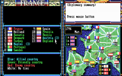 You have to build and organize a loyal military army and lead them into war. Defeat the belligerent neighboring countries and collect taxes and pay stipends on time. But be aware of military uprising, strikes, rebellions and deal with weather conditions a harsh winters and other natural disasters that might occur. You fail if your captured by the enemy or die.