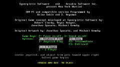 NY Warriors is a top down action game in which you must face various armed gangs in a post apocalyptic New York and finish various missions. The game is heavily influenced by the movie The Warriors. In each mission the player faces a different gang with distinct outfits and characteristics; Ramboids, Sammies, Assasins, Sluggers, Killer Klowns, Ganja and finally Bomber.A fairly common shooter game, it is fairly true to the formula for such games, lots of enemies, lots of shooting and joystick action. Various weapons can be picked up for use as you progress to enhance your firepower. The atmosphere is maintained with details such as snoring bums and packs of stray dogs, also with some darkly cyber-punkish artwork.