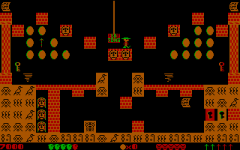 Once inside the pyramid, Nevada will face hazards such as traps, falling spikes, bottomless pits, and dangerous denizens of the pyramids including, bats, monsters, and of course mummies to say the least. Nevada must find a number of keys on each level to advance to the next level and must also be on the lookout for treasures. one other hazard in his way are mysterious winds that blow on certain levels which add to the challenge of exploring the level. Nevada isn't exactly defenseless however. His adventures begin with five lives and he's got a couple of spears which he can throw at the creatures in his way.