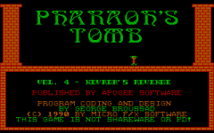 Pharaoh's Tomb is a platform game where the player controls the actions of Nevada Smith. Nevada can run around and jump and he can also throw spears at enemies. More spears can be picked up on certain levels and bonus lives to give you a better chance at getting through the adventure can also be found or earned. Levels are passed once the required number of keys or treasures are found. Players can save their progress at the beginning of any level. Enemies in Pharaoh's Tomb are restricted to move in strict patterns and players must pay close attention to these patterns to avoid them. Throwing spears at enemies also requires some space between the player and the enemy and therefore enemies can't be speared when Nevada is right next to them.