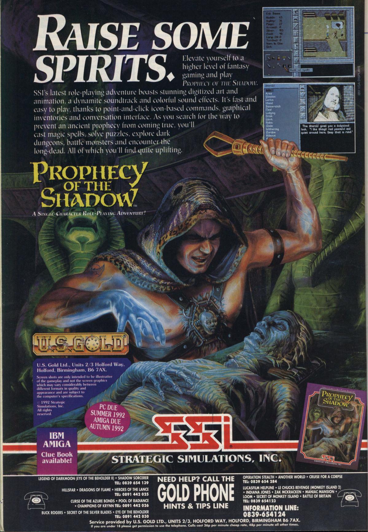 Prophecy of the Shadow is a fantasy role playing game from SSI, published in the post AD&D era of the company. A long foretold prophecy is about to be fulfilled. The Shadow Lords are on the verge of entering our world. The player has to find a way to break the string of events, that are foretold by the prophecy. Magic is dying in the land, and the use of it is illegal -- practitioners are hunted by Mage Hunters. Instead of killing the Ultimate Bad Guy, most of the game is figuring out how to bring the Bad Guy back to life.