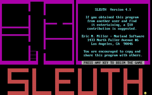 Sleuth is a simple, but fun and memory-challenging ASCII-based murder mystery written by Eric N.Miller, the man behind the well-made Norland Hangman series. In the author's own words: