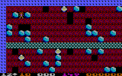 Super Boulder Dash is a compilation including the original Boulder Dash and it's sequel, Boulder Dash II. In each of these games you control Rockford on a quest to recover diamonds from numerous caves. The caves contain numerous (falling) boulders, walls, and assorted creatures that all get in your way! Each game contains both an action and strategy element; you'll need to run fast to avoid creatures and falling boulders, but also need to carefully plot your course through the cave to avoid becoming trapped. When you have collected enough diamonds on the current level, you can make your way to the exit for the next, more difficult round. To make the games more challenging, each level has a time limit for completion.