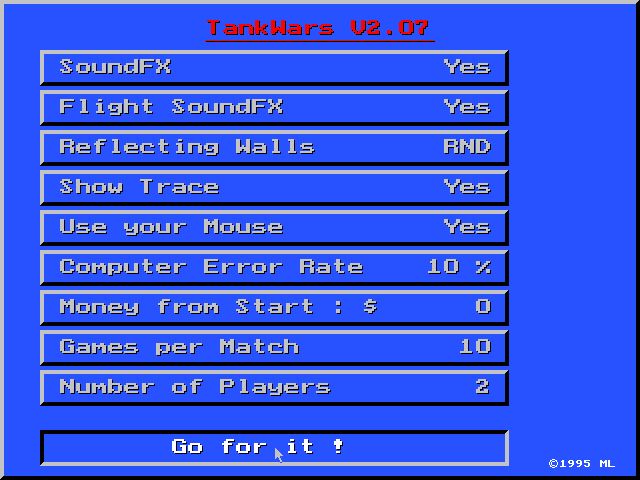 Another variant of the classic of arcade games "Tank Wars". Unlike previous versions, this one is primarily characterized by an increased screen resolution of 640x480. Up to 10 opponents can play, and weaponry is quite diverse: there are ordinary bombs of different power, shells that destroy the landscape, etc. Otherwise, everything is the same - you need to, by changing the power of the shot and the angle of the cannon, destroy the enemy’s tanks.
