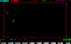 The game is entirely keyboard controlled and as with most of Tommy's games it makes extensive use of the function keys. F9 for example fires the missiles while F3/F4 adjust the difficulty level. Other function keys change the size of the game area, adjust the sighting arrows, and so-on.