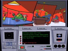 "On board the Acme detective Agency's outer space surveillance craft, your main source of information is the VAL 9000 computer. Val provides information about the history, science, and mythology of space that will aid you in your search. Your search may be extensive. The game includes 32 locations and 1100 clues!"