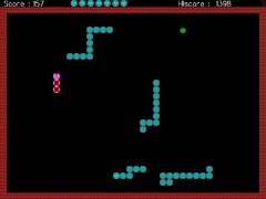 Wurm is a Dutch adaption of the famous Snake games.The player controls a little worm named Wally that is constantly and swiftly moving through a room that spawns all kinds of tasty fruits. By guiding the worm left and right the player has to collect the fruits, just to accumulate points and see the creature grow bigger with every catch. While doing so Wally has to avoid trying to eat the walls of the room or its own tail, because eating something wrong will result in the loss of one of his five lives. From time to time there will be moving butterflies spawning that will restore a live once eaten, the player can even acquire more than the five starting lives. Goal of the game is to accumulate as many points as possible to earn a place in the integrated high score list.So much for the basics, Wurm's gameplay doesn't stay as simple as it first appears. Once the worm's tail has reached a certain length it will suddenly fall off the animal, creating a new non-eatable obstacle in the process. Later on, evil red worms will appear that are either just randomly moving around the screen or are trying to eat the tasty fruits before the player's worm, also growing and losing their tails when successful too often. Next will be flushes of water flooding through the room casting away the creature's valuable food. Then spiders will rope down using their spider silk and creating even more obstacles, flowers growing out of the ground need to be avoided, and so forth.