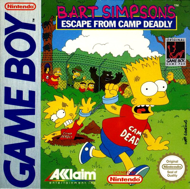 Bart must lead the campers to freedom by making his way through several side-scrolling levels. Bart will make his way through a forest and a camp mess hall and beyond before he reaches freedom. Fortunately, his weapons include spit-wads and boomerangs.