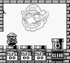 To suit Wario's greedy nature, the game revolves around money. Throughout the stages, you can earn coins by grabbing them floating in the air, punching them out of bricks, or by body slamming into foes and then collecting the coins they drop. You can also find hidden treasures buried deep within some levels by finding a key and then throwing it at the skull door to unlock it. Once Wario reaches the end of a level, he usually needs to pay a toll to get the end-of-level door to open. Pressing Up on the Control Pad and B pulls out a coin worth 10 coins, which you must throw at the door. Once the door opens, you can exit and the level is complete. Before you finish each level, you can choose to play a mini-game that doubles or halves the amount of coins you have, with a 50/50 chance. You get three tries, and can choose to leave whenever you wish...so don't get too greedy!