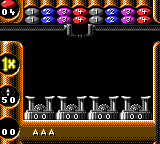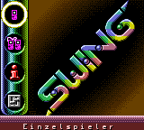 Swing was a Germany exclusive Game Boy Color puzzle game. A multilanguage prototype with an English option also exists. The object of the game is to score points by dropping balls onto sets of see-saws, in rows of three or more of the same colour. The twist, however, is that each ball has a different weight, determined by the number written on the front of it. The higher the number, the heavier the ball. This means that if a ball is placed onto one side of the see-saw which is heavier than the total value of the balls on the other side, the balance would be upset, sending the top ball flying across the playing field to land on another column. Cascade 'throws' can be achieved, and the game is over if a column reaches too tall. A variety of bonus balls, all with special uses, also feature.
