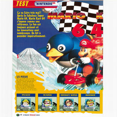 The game offers two camera angles and three engine sizes: 50cc, 100cc and 150cc. You can gain even more speed by mastering the power slide technique or grabbing Super Star power-ups. Each kart has distinctive handling, acceleration and top speed capabilities. Light karts like Princess's smoothly steer through tight corners, but run the constant risk of getting flattened by heavy karts, like Donkey Kong's. Shells that you fire at rival racers, Bananas that make them skid out and Lightning Bolts that make them small and very slow are just a few of the game's unique power-ups.