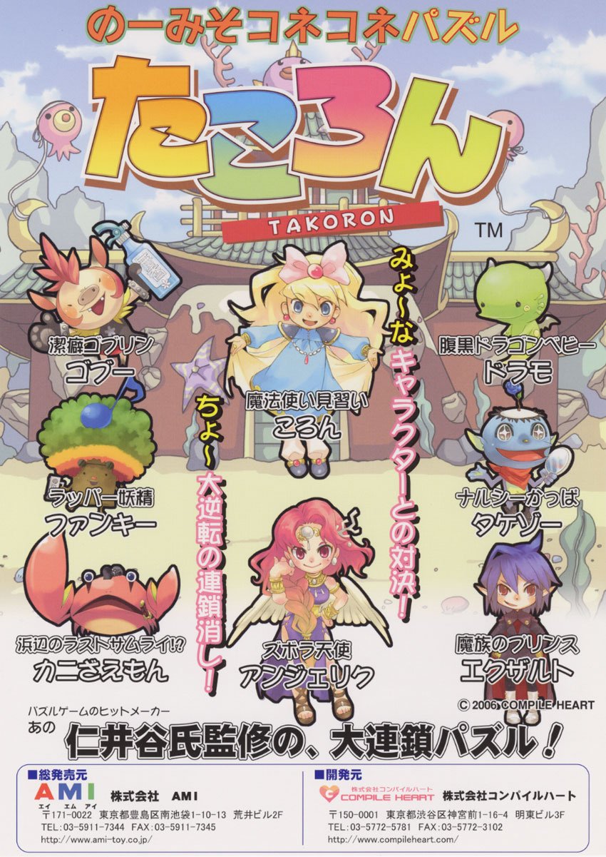 Noukone Puzzle Takoron is an arcade puzzle game released for Sega NAOMI arcade hardware. The game was released on the Wii as Octomania under another publisher.