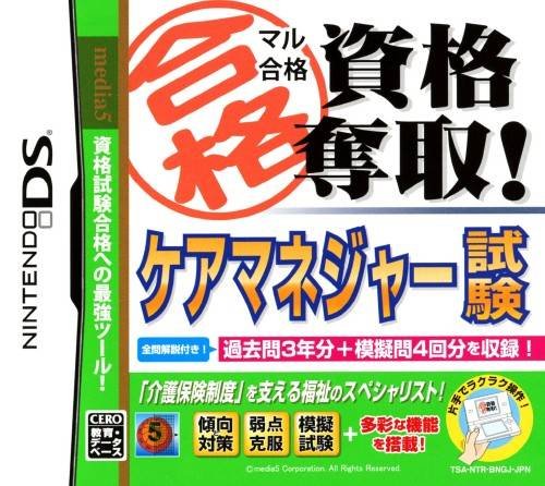 Maru Goukaku: Shikaku Dasshu! Care Manager Shiken is a simulation game on the Nintendo DS that allows players to prepare for the care manager certification exam in Japan. Players must manage a virtual nursing home by taking care of residents, managing staff, and facing various challenges. The game is only available in Japanese.