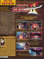 This sequel to Samurai Shodown introduces five new playable characters: the warrior and Haohmaru's rival Genjuro Kibagami, the cat-like Cham-Cham (Tam-Tam's sister), the Prussian gun-wielding knight Neinhalt Sieger, the old monk Nicotine Caffeine, and the hidden boss and unlockable character Kuroko.