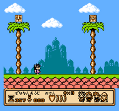 Banana Prince is an action platformer. You travel between locations on the world map in a linear fashion, entering various platform levels - forests, caves, towers, etc. The Prince will find various weapons during his journey and use them to take care of the numerous enemies. You can also collect rings scattered everywhere and use them as currency in shops, where you can acquire various items.