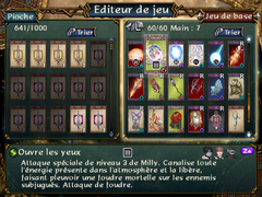 The battles in the game aren't random; as you explore the worlds, enemies will be visible on screen in some areas and contact with them begins the battle. In addition to the main story line, numerous sub-quests will also become available by talking with various characters; completing a sub-quest will typically earn a useful item for you as well as provide an opportunity for your characters to level up. You will encounter many types of enemies on both the main quest and subquests; since different enemies may require different strategies, you have the ability to customize the deck of cards you will use in battle. As you gain experience, you will also gain the ability to create multiple decks.