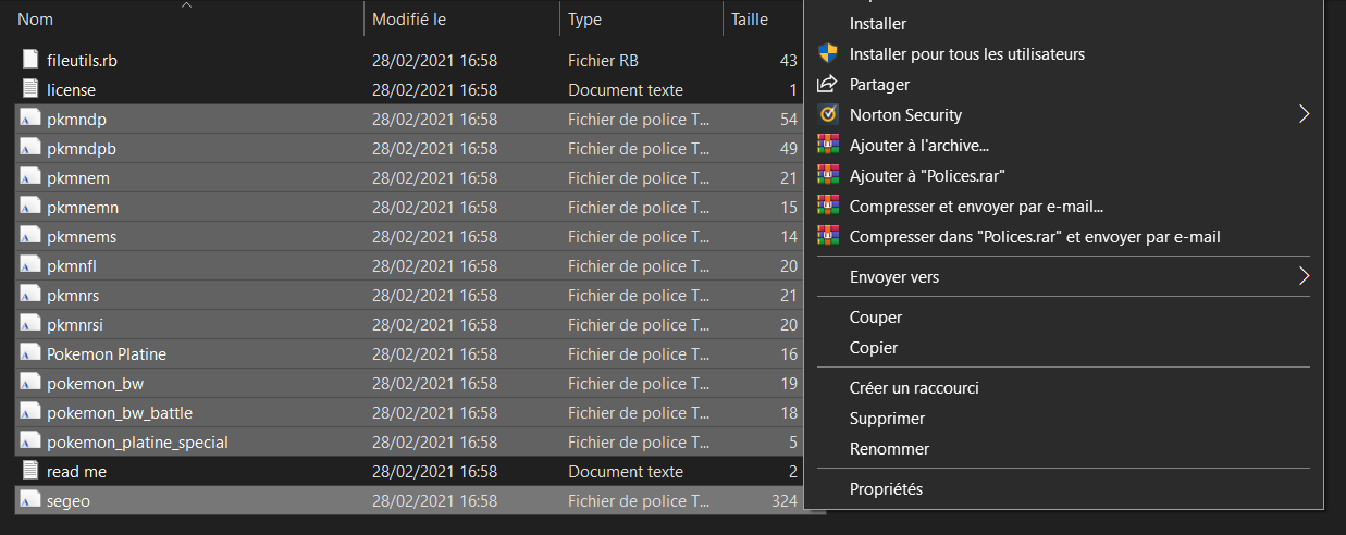 /!\ If the fonts do not install automatically, go to: "C:\RomStation\app\games\downloads\Pokémon Extinction - 43727\files\26986\Projet\Polices"