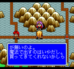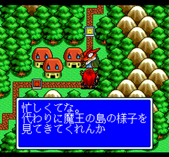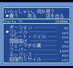 Different spots on the board have a variety of effects on the party. Red-colored spots lead to turn-based enemy encounters. The player must press a button in time to choose an attack by a specific party member, and also to determine its strength. Experience points are rewarded after battles, and the characters level up in a fashion similar to other Japanese RPGs.