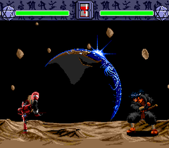 The gameplay is for the most part traditional fighting game-style (with the obligatory two-player battle mode as an option to the linear story mode); an important difference is the fact that some of the characters use swords and other weapons, rather than fight with their bare hands. The traditional "kick" and "punch" buttons are called "short attack" and "long attack" here; their execution is unique to each fighter.