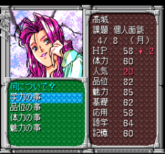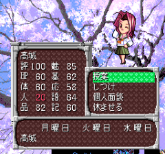Sotsugyō is the first game in the series, released only in Japan. It puts the player into a position of a high school teacher, whose goal is to successfully lead five female students to graduation within the same semester. In order to do that, the player has to study the individual characteristics of the girls. Each girl has different parameters, different strengths and weaknesses. The teacher should be careful not to overload the students with work, but letting them do what they want is not the right way either. The teacher has also control on other aspects of the students' life: it is possible to have personal conversations with the girls to motivate them, and choose leisure activities for them (such as going to the cinema). The girls can become displeased with the teacher or sick, so it's important to keep the morale high in order to achieve successful graduation.