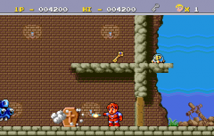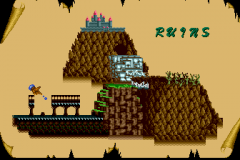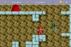 Getting power-ups will make the fireball soon increase to a bouncing fireball, which will deal more damage to enemies. Treasure chests can be busted open, allowing Tommy to collect coins. Tommy's journey will have him explore ruins, cliffs, statues, dungeons, and finally the castle. At the end of each level, there is a boss that must be defeated in order to proceed to the next stage.