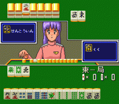 Shikaka Retsuden Mahjong Wars is a simple Role Playing Game with a blend of Mahjong. Our hero, a young teenage male, travels all around Japan and hold various Mahjong duels mainly against (cute) female characters. A good understanding of Japanese is needed in order to progress in the game despite its overall simplicity. There are many puzzles to solve, and some need to be unlocked in a specific order. The world is quite large, with big cities to visit, various caves and dungeons. The game uses the Backup Ram and it is advised to use it. Without it, a more classical and really painful password system needs to be used instead to save the game's progress. Shikaka Retsuden Mahjong Wars also offers a Normal Mode where the player can play a game of Mahjong again CPU controlled opponents.
