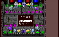 Morita Shōgi PC is an adaptation of Shogi, a Japanese chess version. The game is very similar in concept to Battle Chess II: Chinese Chess (Shogi is the Japanese counterpart of the Chinese XiangQi) or Battle Chess. The player can play in special graphic mode where all figures are animated with various monsters like slimes, frogs, skeletons or minotaurs. During encounters fight animations are shown. The gameplay is generally identical to other Shogi games. The player controls various figures on a 9x9 board and tries to defeat an opponent. Each figure has its own rules for movement and attack.