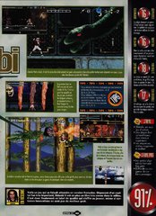 Shinobi Legions is a side-scrolling action game, similar to Shinobi III. Sho's primary weapons are a sword and a finite number of shurikens, both of which are activated with separate buttons. Sho can learn nearly a dozen sword abilities (spinning slash, downward slash, sword shielding, etc.) by collecting powerups scattered throughout levels. There are also "Fire Dragon" powerups that act as single use ninja magic attacks that damage all enemies onscreen, which is the only ninja magic available to Sho. The 9 levels range from fighting in the jungle to climbing Mount Fuji, where Sho will encounter mostly enemy ninjas and a few animal enemies (eagles, snakes, etc.). Shinobi Legions is the only Shinobi game for the Saturn and is notable for its use of live-action cutscenes and its use of blood (the first in the series).