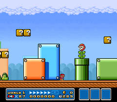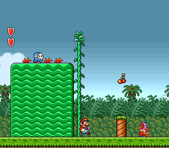 Note : Dans la version de Super Mario World incluse, le sprite de Luigi (joueur 2) est un poil plus grand et plus mince que celui de Mario, et non une simple recoloration.