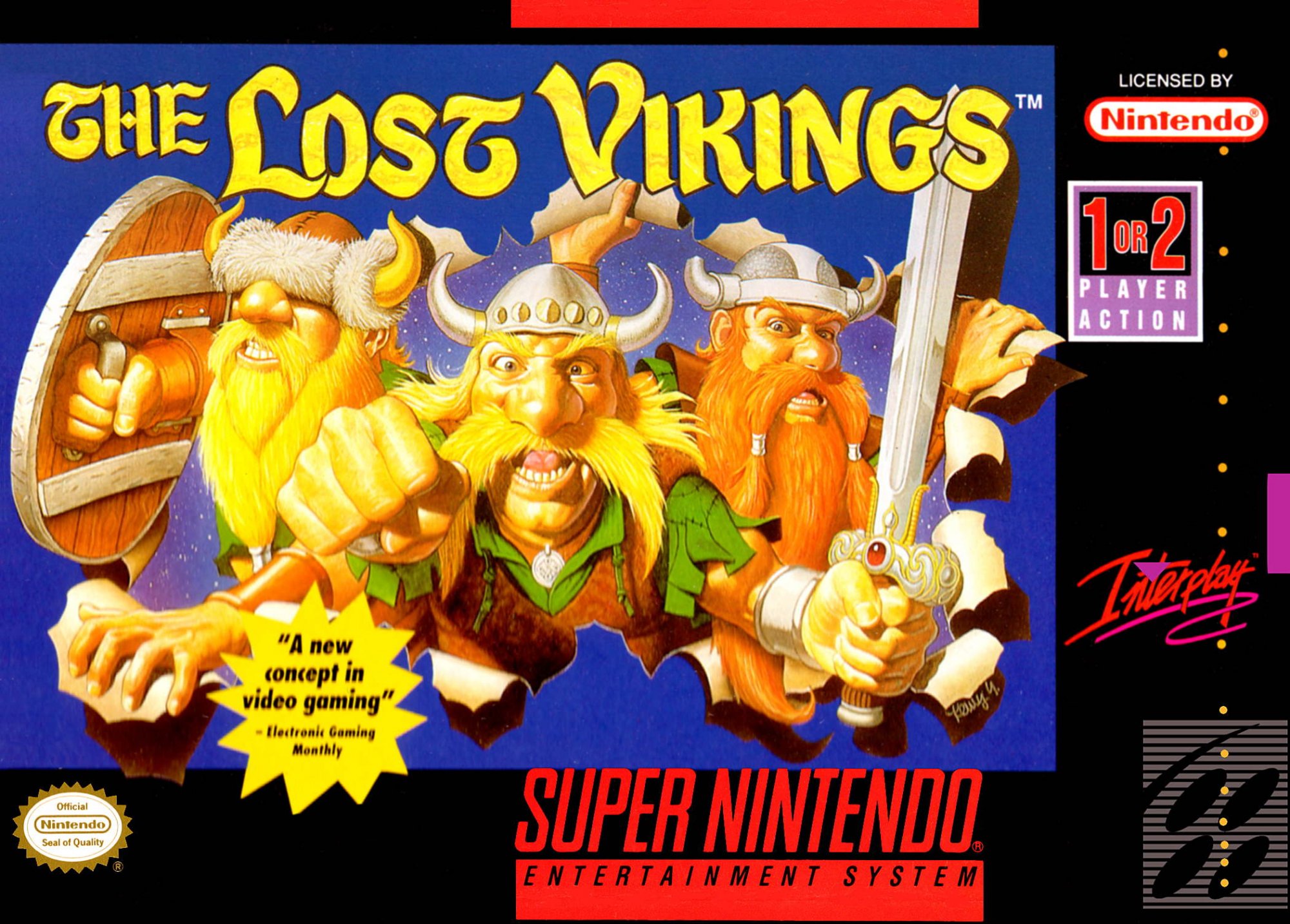 The Lost Vikings is a side-scrolling platform puzzle game with a twist. Instead of one character who can jump, run, shoot, collect items, flip switches and so on, there are three different characters, each with his own skills. Eric the Swift can jump, run and bash through walls with his tough helmet. Olaf the Stout has a shield which can block attacks, function as an air glider or as a step to stand on. Baleog the Fierce can shoot things with his arrows (including switches) or kill things with his sword. The player has to use the three Vikings as a team if he wants to get past the increasingly difficult levels and puzzles.